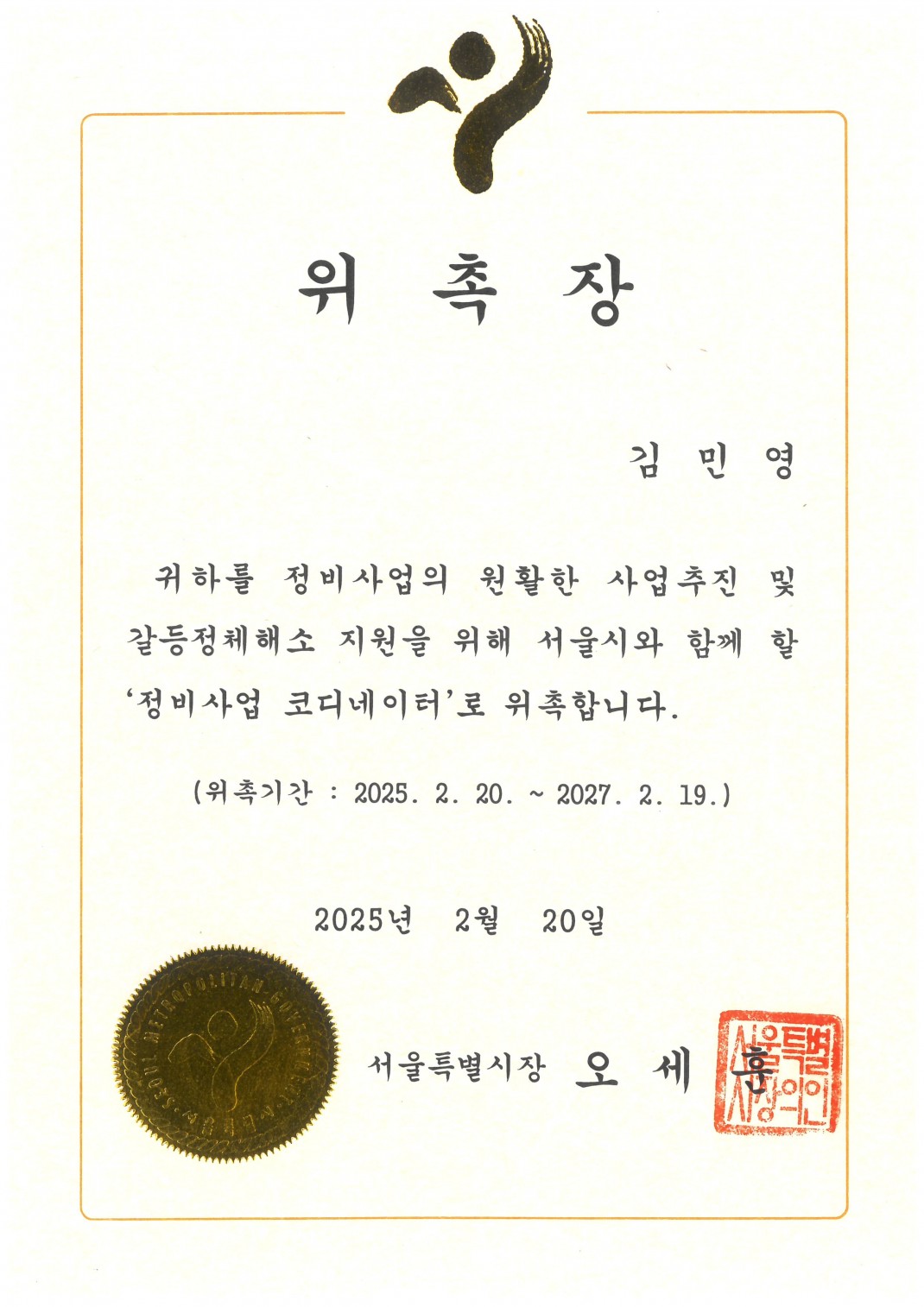 정비사업 코디네이터 위촉장